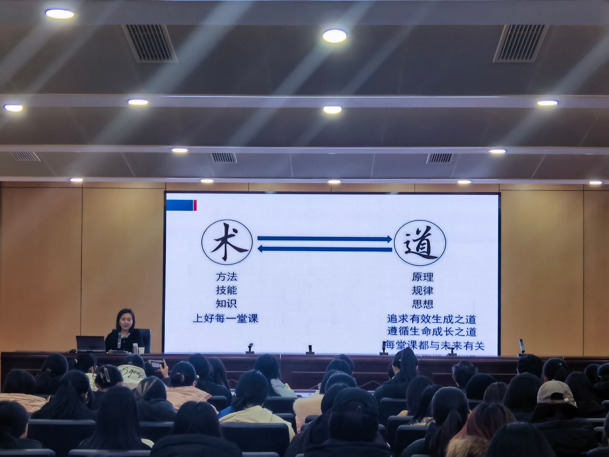 为充分发挥齐鲁名师名校长在师范生专业发展中的示范引领作用,打造职前与职后一体化培养体系,全面推进生物科学(师范)专业人才培养质量,12月12日上午,生命科学学院邀请济南西城实验中学教学管理部主任、高级教师王茜在第二学术报告厅为师生作题为《生物教师专业发展的“术”与“道”》的学术报告。学院院长崔大勇、党委书记张海龙及生物科学(师范类)专业近200名师生参加活动。报告由崔大勇主持。