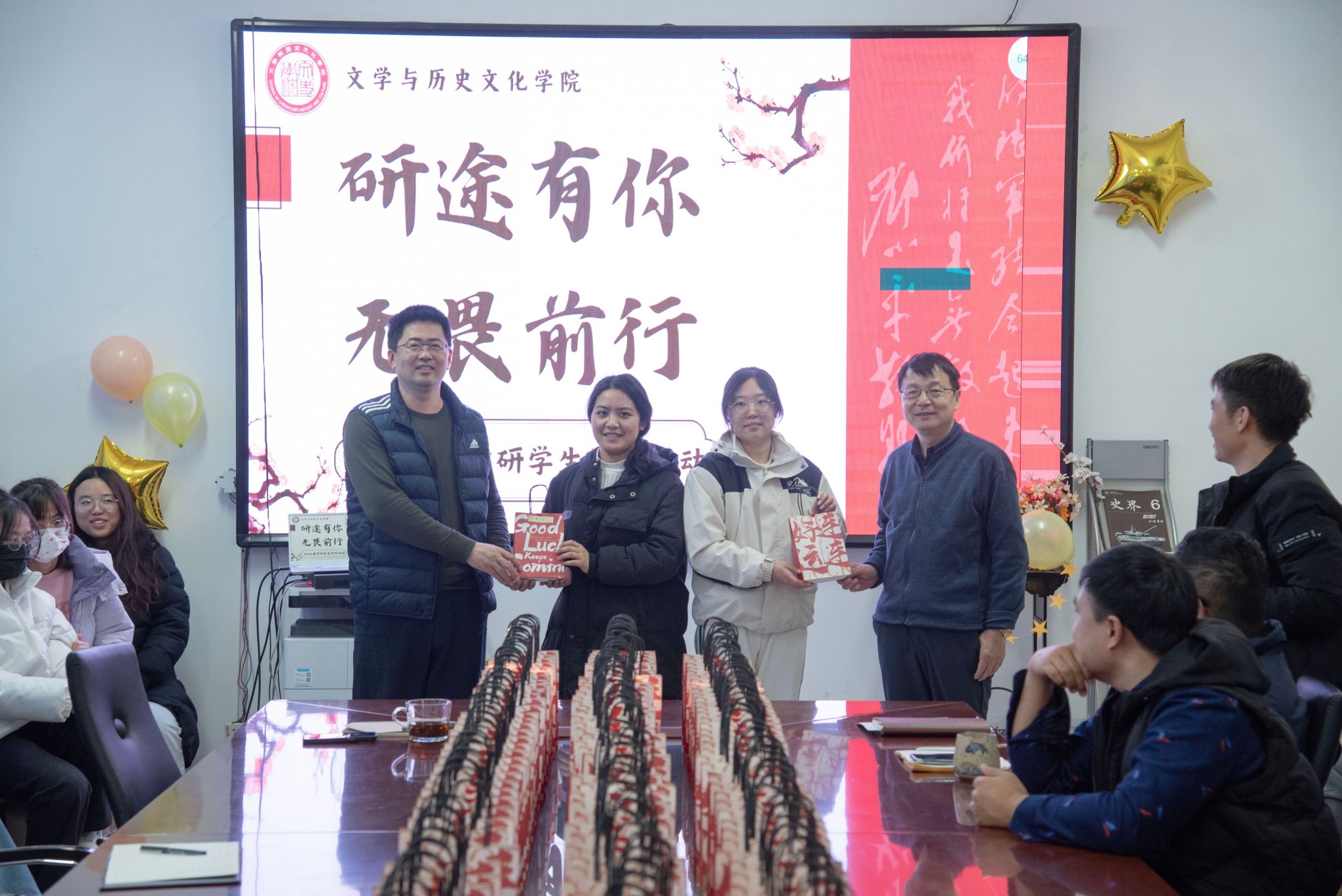 活动最后,学院为考研学生发放了精心准备的考研暖心礼包,祝愿学子们“麒”开得胜,一“研”为定,表现了老师对同学们最诚挚的祝福。