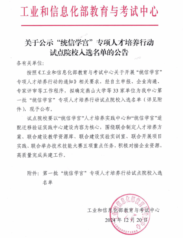 近期,工业和信息化部教育与考试中心“统信学宫”专项人才培养行动试点院校名单正式公布,齐鲁师范学院入选“统信学宫”人才培养实践中心共建项目。
