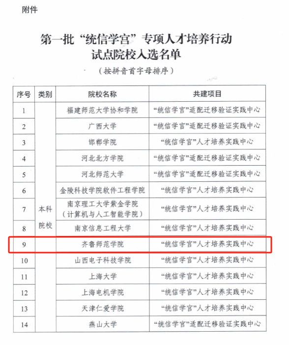 齐鲁师范学院入选“统信学宫”专项人才培养行动试点院校