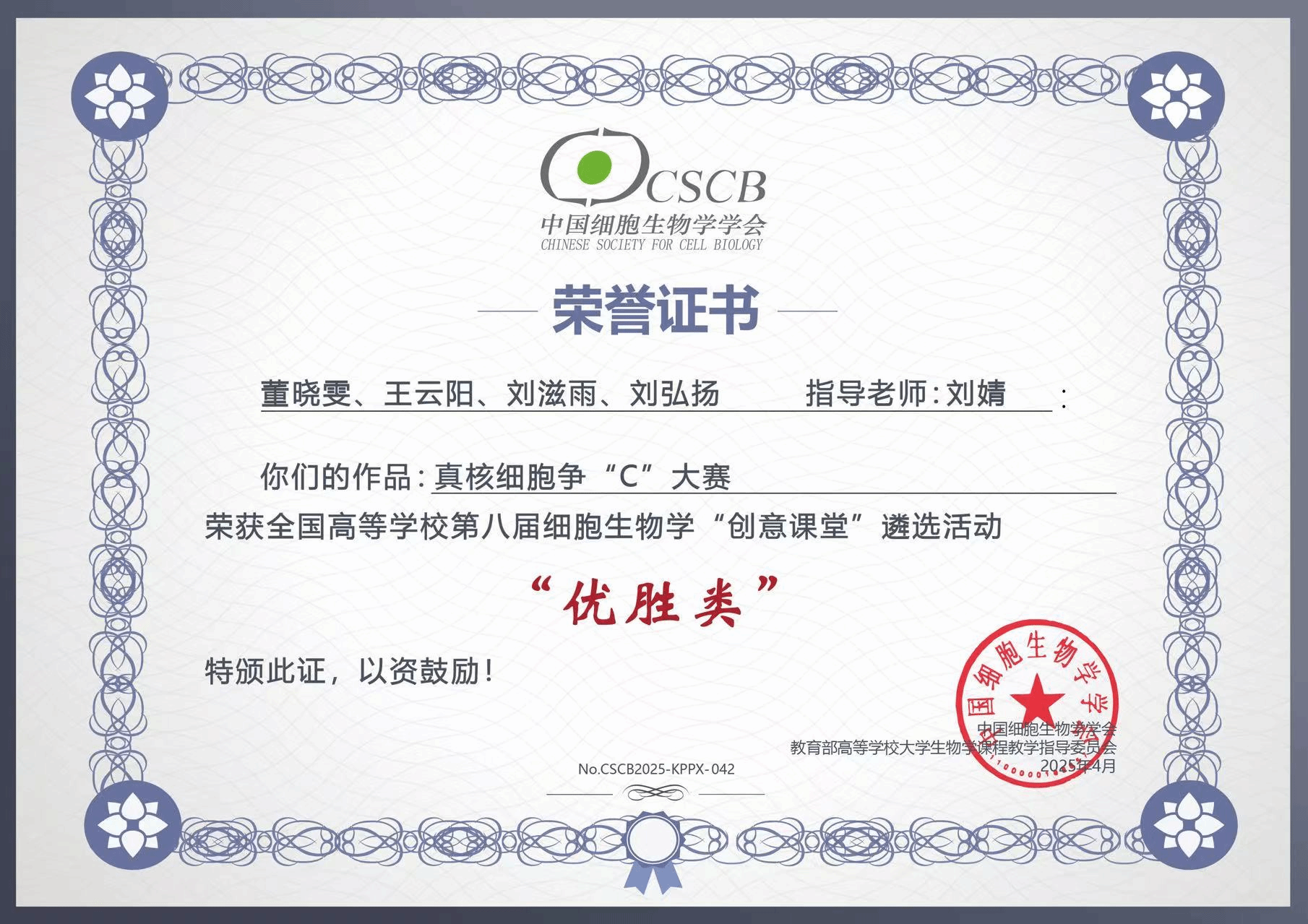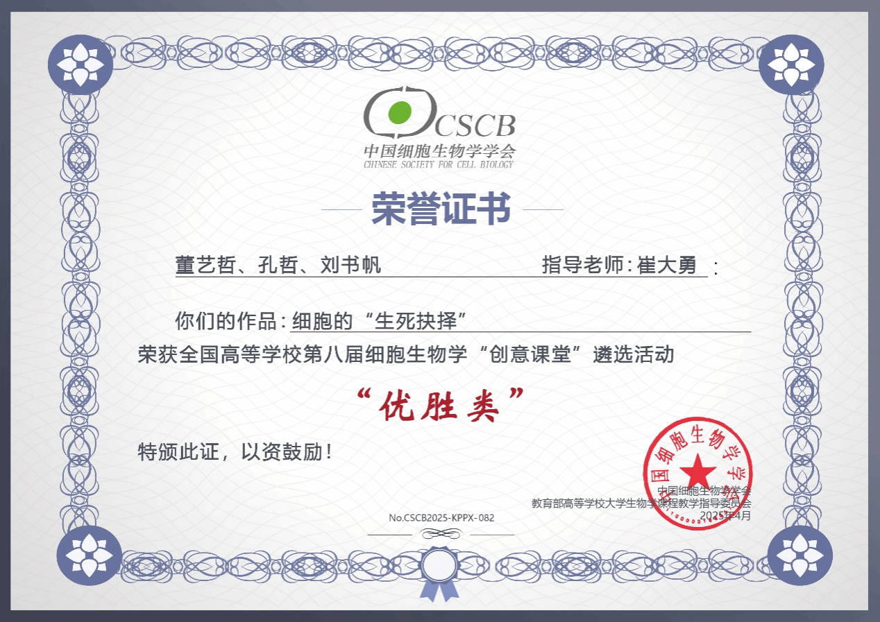 生命科学学院在第八届细胞生物学“创意课堂”遴选活动中荣获佳绩